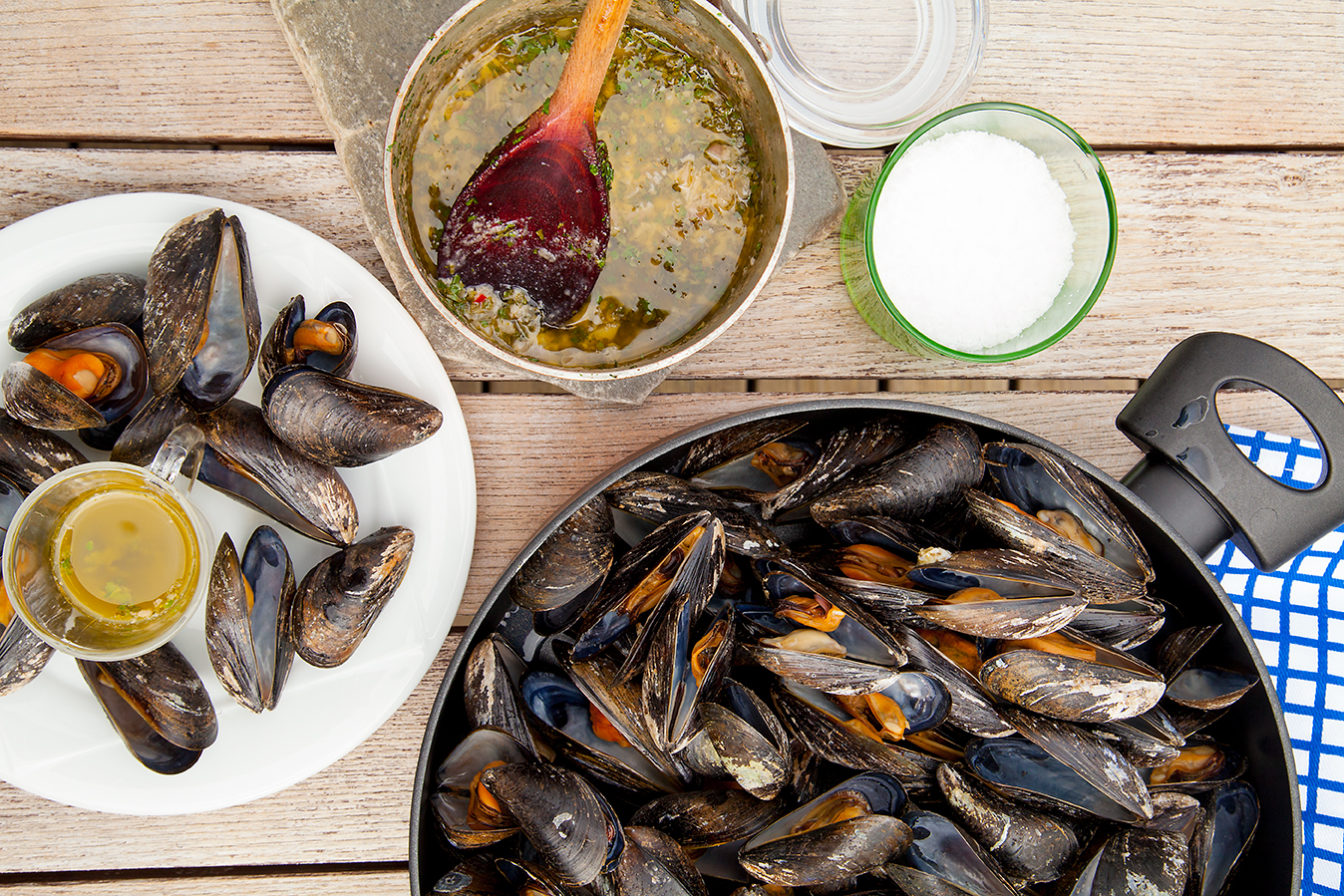 Tips: Sila musselspadet i kastrullen och använd som smaksättare i en sås. Kan med fördel frysas in till senare tillfälle.