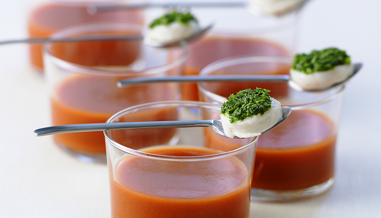 Gör så här Koka upp 2 dl gazpacho med en fiskbuljongtärning och låt svalna. Blanda i resten av soppan, ställ... Läs mer