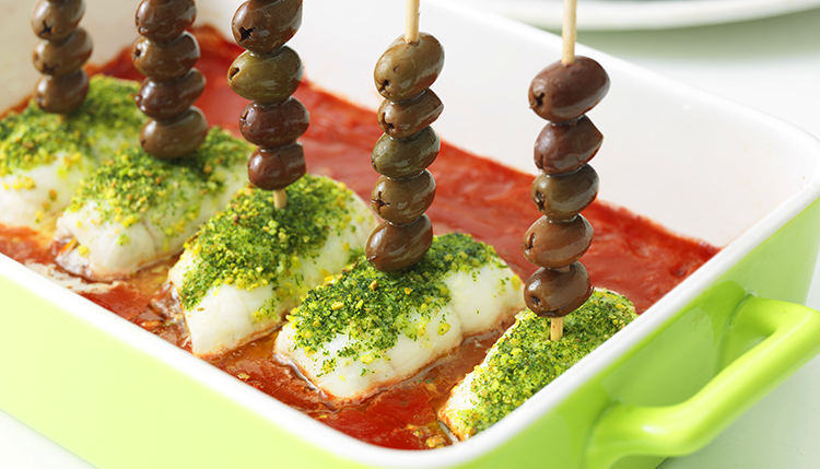 Gör så här Lägg upp fiskfiléerna på en skärbräda med skinnsidan upp. Fördela olivmixen på filéerna och rulla ihop. Lägg... Läs mer