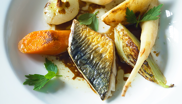 Gör så här Lägg makrillfiléerna med skinnsidan ner i en ugnssäker form. Strö på salt och peppar. Bred riven pepparrot... Läs mer
