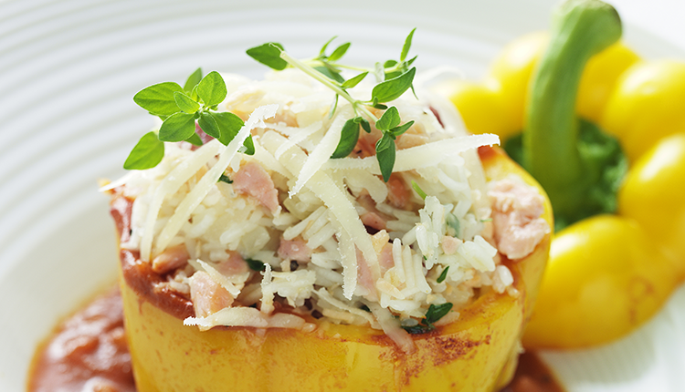 Gör så här 1. Koka ris, gör tomatsås (eller värm färdig) 2. Skär ”locken” av och gröp ur paprikorna. 3.... Läs mer