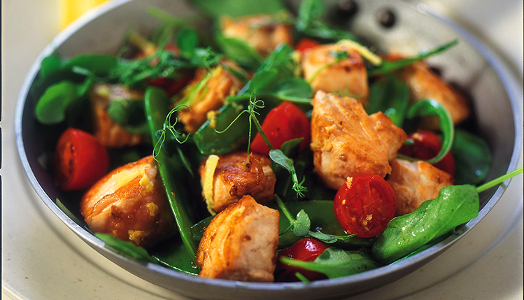 Gör så här Skär laxen i bitar och stek i en stor stekpanna. Krydda med soya, ingefära och limesaft. Smaka... Läs mer