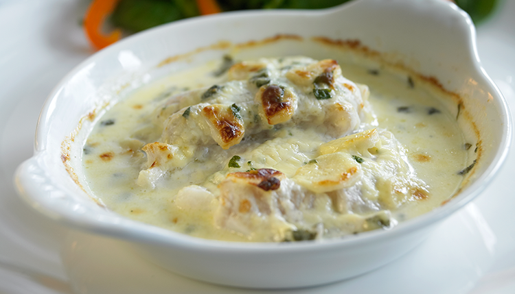 Gör så här Lägg fisken i smord, ugnssäker form, salta och peppra Lägg skivad vitlök och hackad salvia på fisken... Läs mer