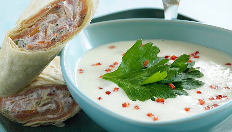 Gör så här • Koka potatis och selleri mjuka i mjölk. • Mixa soppan slät med crème fraiche, salta och... Läs mer