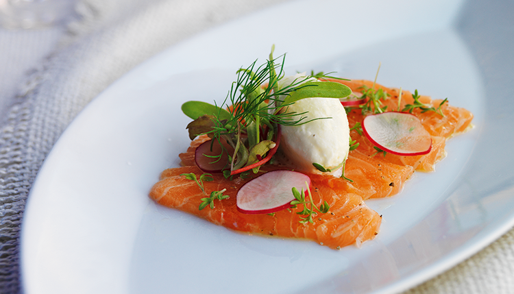 Tunnskuren citronpenslad lax med kräm på blomkål och färskost