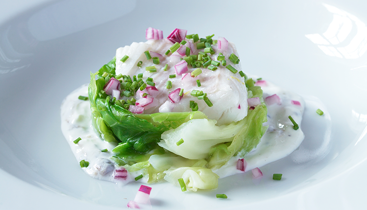 Gör så här Dela torsken i 6 bitar, och stek bitarna hastigt runt om. Ställ åt sidan. Koka spetskålsbladen mjuka... Läs mer