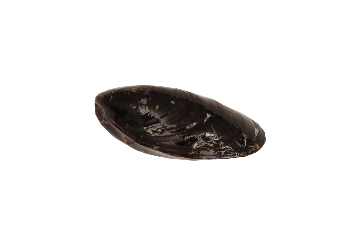 Blåmusslan har ett typiskt musselutseende med två snarlika skalhalvor som i bakändan kröker sig. Utsidan är blå-svart medan insidan är pärlvit med ljusblå inslag. Blåmusslan kan bli 15 cm lång men är vanligtvis under 10 cm.